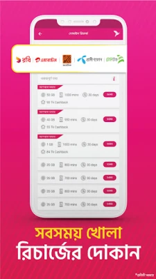 Let bKash App take care of latest offers and best deals of your mobile operator. View and purchase recharge-based Internet, Voice and Bundle offers of different mobile operators in Mobile Recharge.