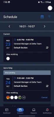 View work schedules from anywhere Easily swap shifts Show your availability Request time off View hours worked See who else is scheduled with you