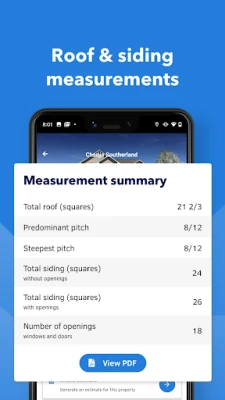 Measure everything. Get detailed, to-the-inch accurate exterior and interior home measurements from just 8 smartphone photos or by uploading a blueprint plan. No measuring tape or tracing required. For roof area, roof pitch, roof area, siding, soffits, eaves, fascia, trim, gutters, windows, doors, and more.
