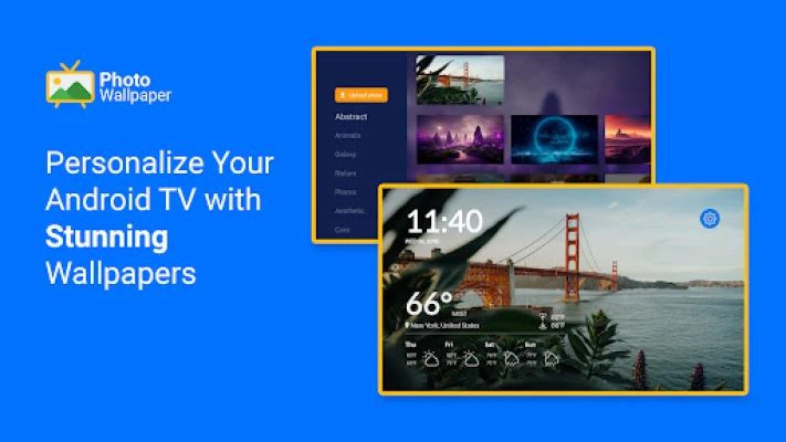 Make the most of your Android TV display with a variety of customizable wallpapers and advanced features with our Photo Wallpaper app.
